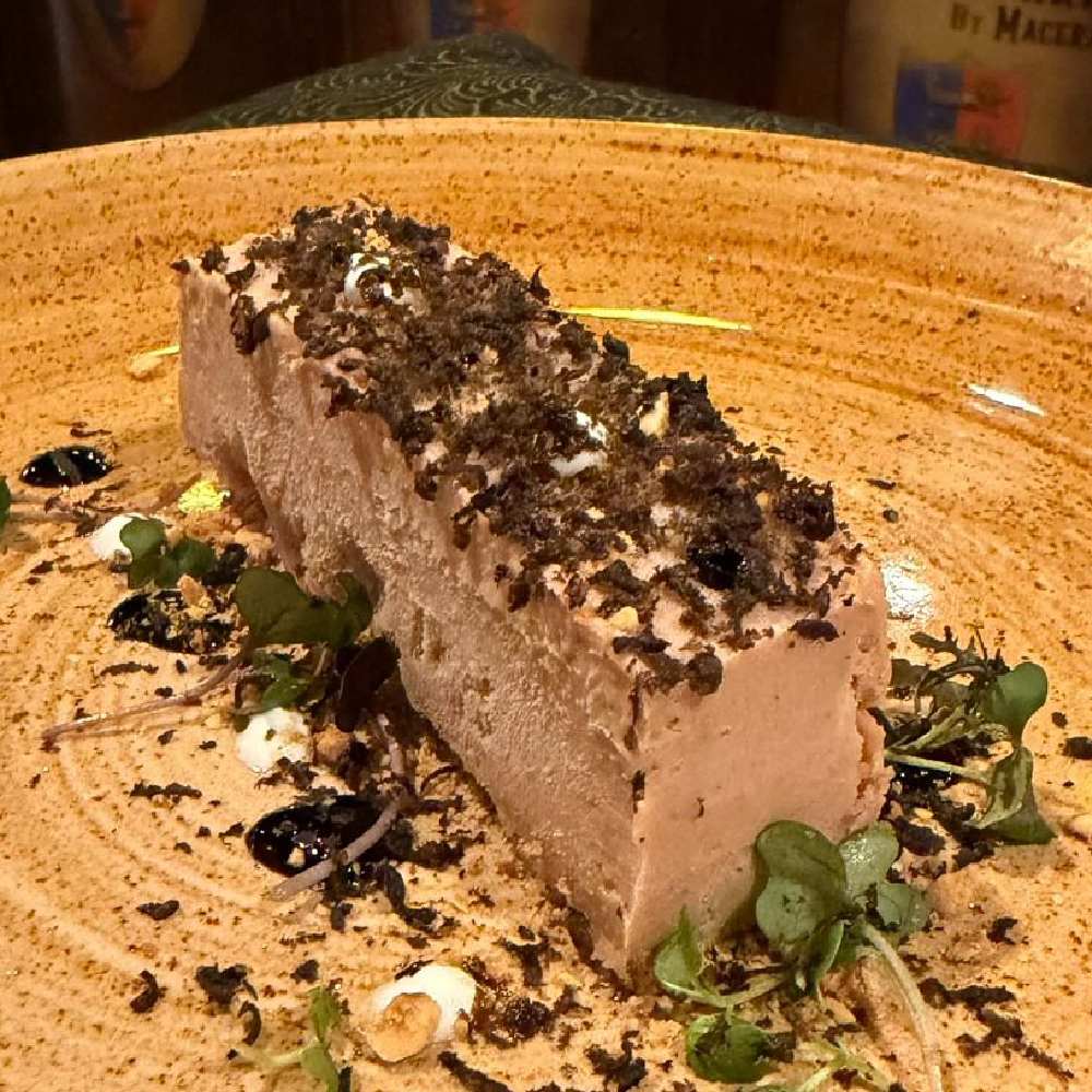 Lingote de turrón de Xixona y foie con trifa negra de Aragón.